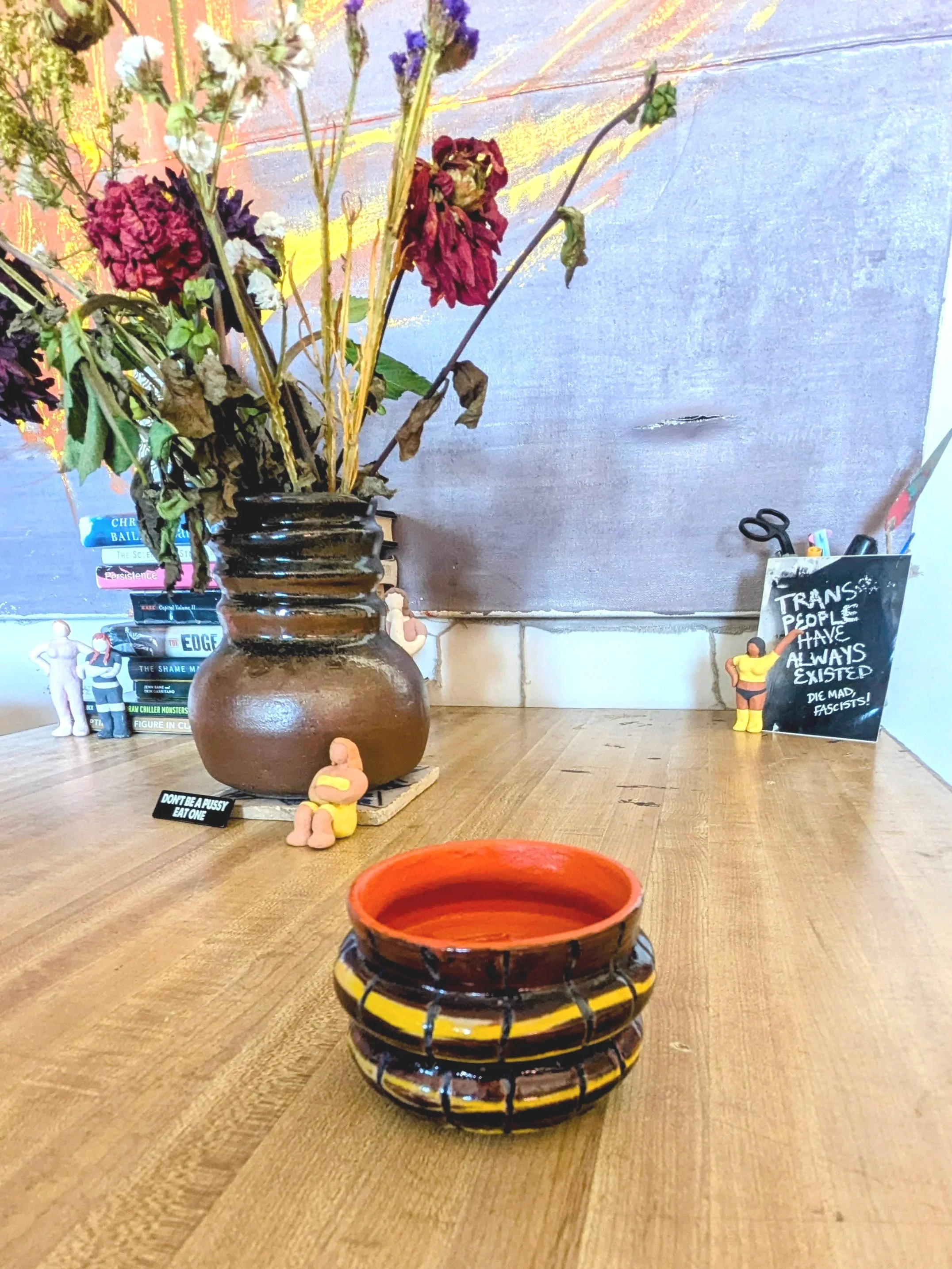 CERAMICS * CERAMICS * CERAMICS * Book holders $15.00 Antonio $75.00 Double Fisted Pink Cup $30.00 Funky Orange Key Holder $20.00 Purple Bubble Cup & Saucer Set $25.00 White Bubble Mug & Saucer Set $40.00 Black Bubble Mug & Saucer Set $40.00 Sold out Sassafras $80.00 Bunny Biotch $75.00 Monster sculpture $100.00 Colorful ceramic to-go cup $55.00 Large ceramic to-go cup $75.00 Large handmade to-go cup $85.00 Carved to-go cup $55.00 Sold out Intricate to-go cup $65.00 Sold out Purple ceramic to-go cup $55.00 Sold out Handmade box $25.00 Striped box $25.00 Sippy cups $30.00 Sold out Two-face $80.00 Sold out Pedestal candlestick holder $25.00 Lil hearts dark pink candlestick holder $20.00 Cinnamon peppermint candlestick holder $20.00 Sold out Pink & White candlestick holder $20.00 Sold out Suggestive candlestick holder $20.00 Sold out Yaaassified goth easter island head $75.00 Fran your left-pinky woman $75.00 Banana hammock $120.00 Sold out Grandpa illasfuk $75.00 Blue-eyed midwestern baddie $75.00 Sold out Grinch's spawn $75.00 Sold out Pinky ashtray $30.00 Sold out Penelope the licker $75.00 Sold out Funky ashtray $25.00 Sold out Bowlful of emotion $45.00 Sold out Lucy <3 $75.00 Sold out Handmade vase $100.00 Nail filing cortado cups $18.00 Sold out Porcelain chalice $45.00 Sold out Porcelain whiskey cups $25.00 Sold out Porcelain shot glasses $15.00 Sold out Lavender tumblers $25.00 Espresso cups with saucers $20.00 Sold out